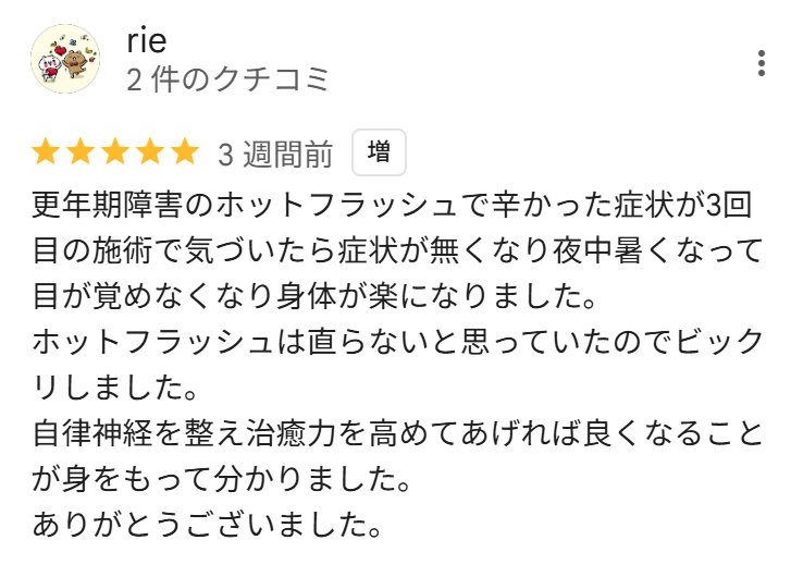 施術3回で、ほてりがなくなり、ぐっすり寝れるように!