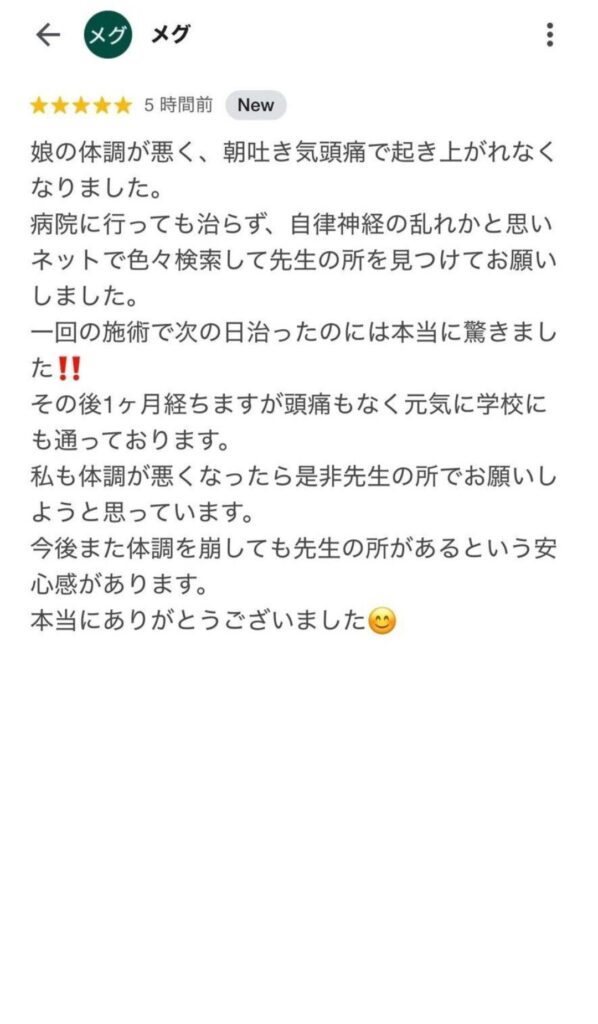 一回の施術で次の日治ったのには驚きました!